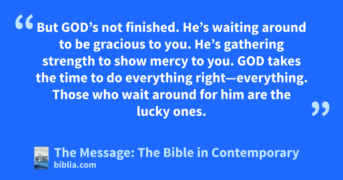 18 But God’s not finished. He’s waiting around to be gracious to you.