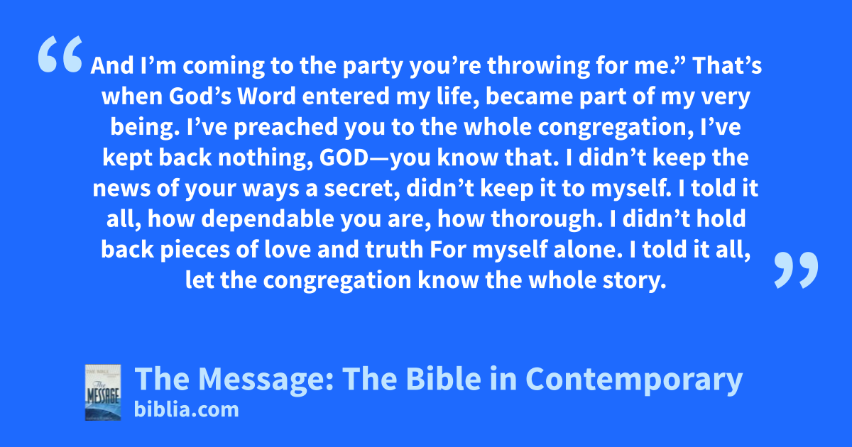 About The Message: The Bible in Contemporary LanguageMany people assume that a book about a holy God should sound elevated, stately, and ceremonial. If this is how you’ve always viewed the Bible, you’re about to make a surprising discovery. The Message brings the life-changing power of the New Testament, the vibrant passion of the Psalms, and the rich, practical wisdom of Proverbs into easy-to-read modern language that echoes the rhythm and idioms of the original Greek and Hebrew. Written in the same kind of language you’d use to talk with friends, write a letter, or discuss politics, The Message preserves the authentic, earthy flavor and the expressive character of the Bible’s best-loved books. Whether you’ve been reading the Bible for years or are exploring it for the first time, The Message will startle and surprise you. And it will allow you to experience firsthand the same power and directness that motivated its original readers to change the course of history so many centuries ago. |