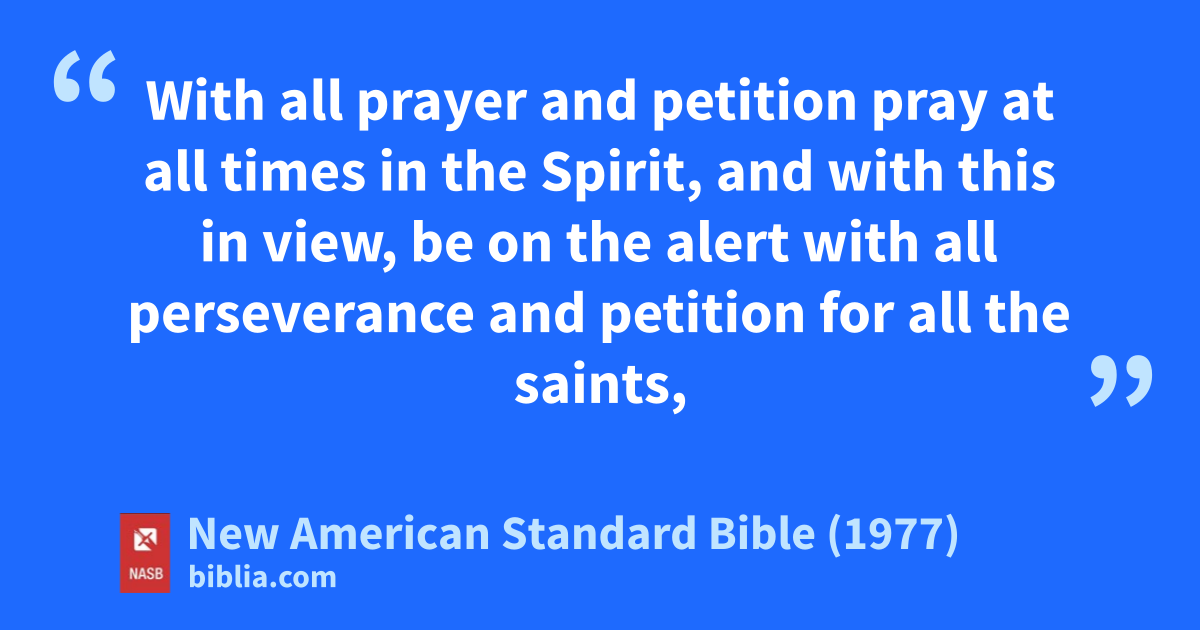 With all prayer and petition pray at all times in the Spirit, and with this in view, be on the alert with all perseverance and petition for all the saints,