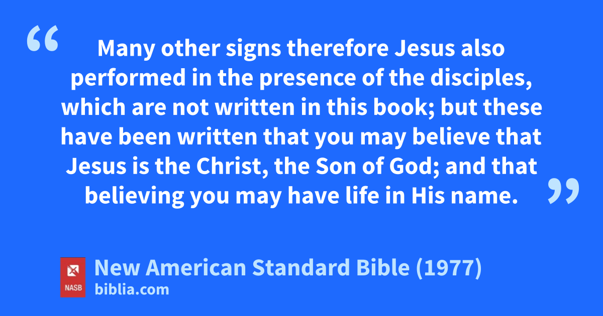 Many other signs therefore Jesus also performed in the presence of the disciples, which are not written in this book; but these have been written that you may believe that Jesus is the Christ, the Son of God; and that believing you may have life in His name.