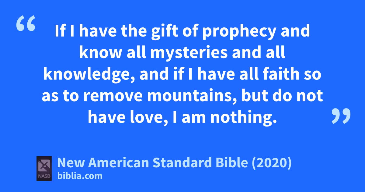 If I have the gift of prophecy and know all mysteries and all knowledge, and if I have all faith so as to remove mountains, but do not have love, I am nothing.