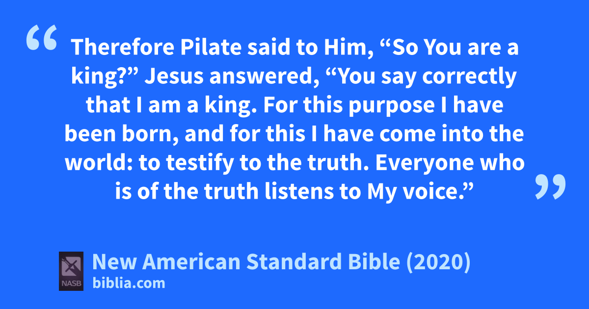 Therefore Pilate said to Him, “So You are a king?” Jesus answered, “You say correctly that I am a king. For this purpose I have been born, and for this I have come into the world: to testify to the truth. Everyone who is of the truth listens to My voice.”