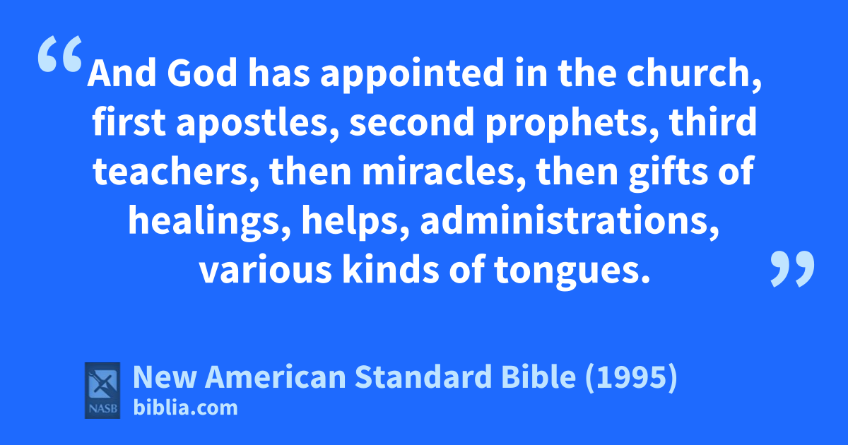 28 And God has 1aappointed in bthe church, first capostles, second dprophets, third eteachers, then 2fmiracles, then ggifts of healings, helps, hadministrations, various ikinds of tongues.