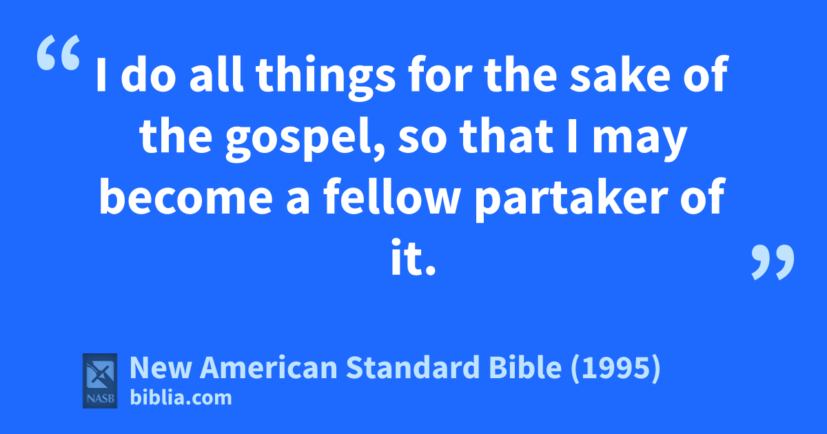 23 I do all things for the sake of the gospel, so that I may become a fellow partaker of it.