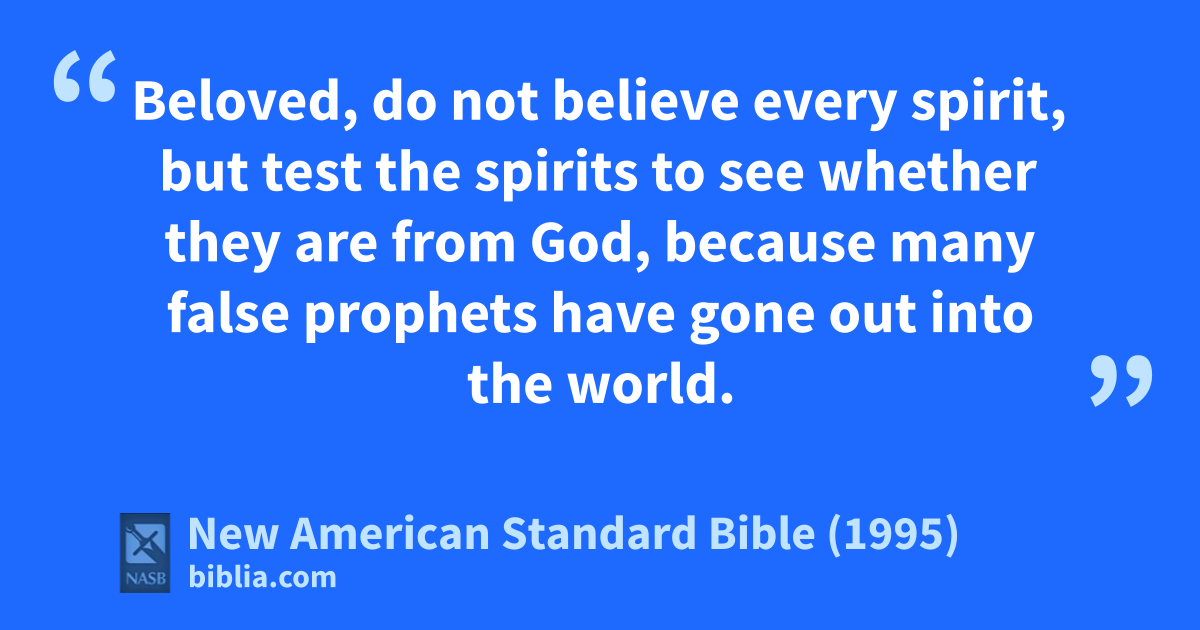 1 aBeloved, do not believe every bspirit, but test the spirits to see whether they are from God, because cmany false prophets have gone out into the world.