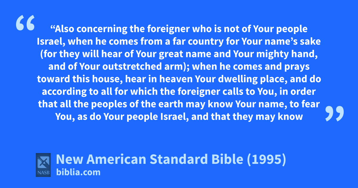 41 “Also concerning the foreigner who is not of Your people Israel, when he comes from a far country for Your name’s sake