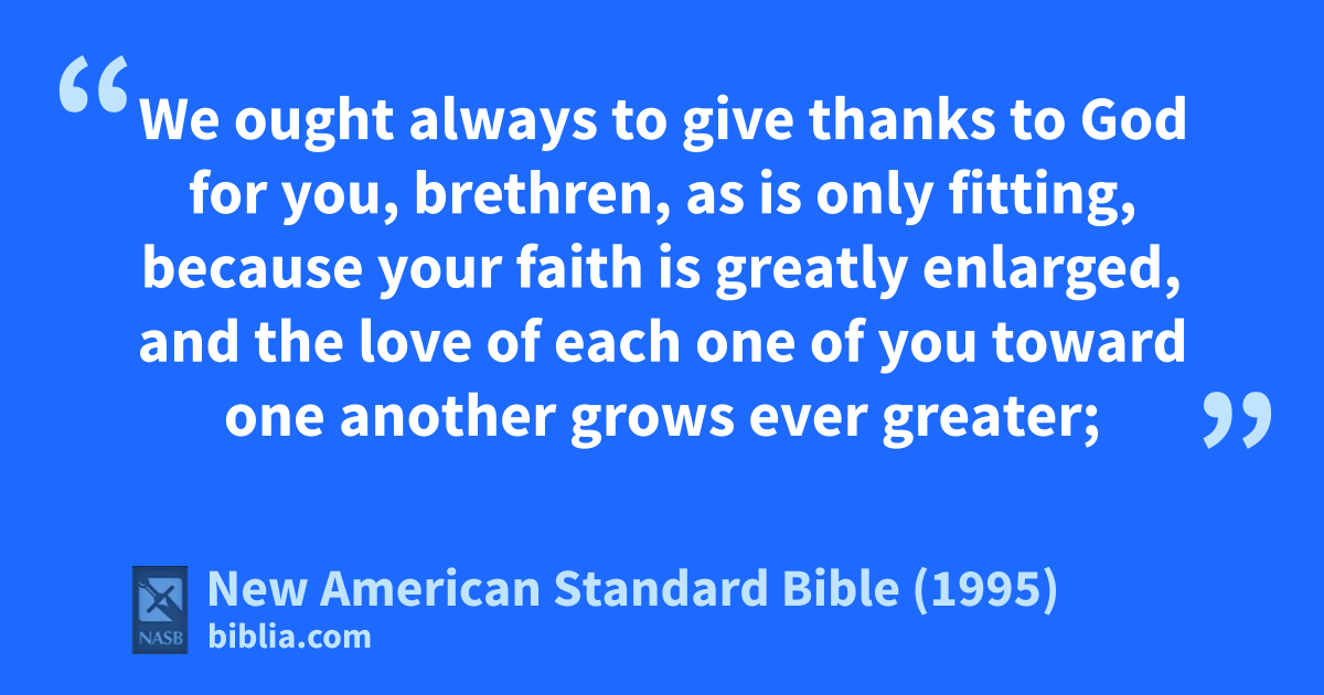 3 We ought always ato give thanks to God for you, bbrethren, as is only fitting, because your faith is greatly enlarged, and the clove of each one of you toward one another grows ever greater;