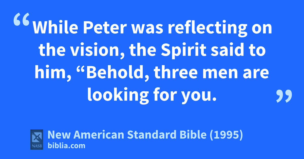 19 While Peter was reflecting on athe vision, bthe Spirit said to him, “Behold, 1three men are looking for you.
