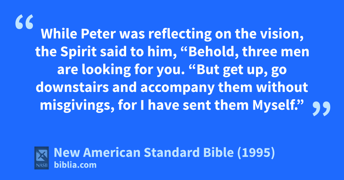 20 “But get up, go downstairs and aaccompany them 1without misgivings, for I have sent them Myself.”