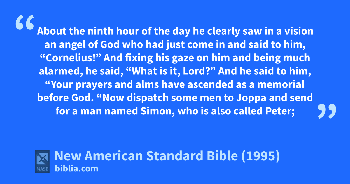 3 About athe 1ninth hour of the day he clearly saw bin a vision can angel of God who had just come in and said to him, “Cornelius!”
