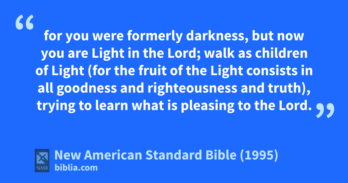 8 for ayou were formerly bdarkness, but now you are Light in the Lord; walk as cchildren of Light