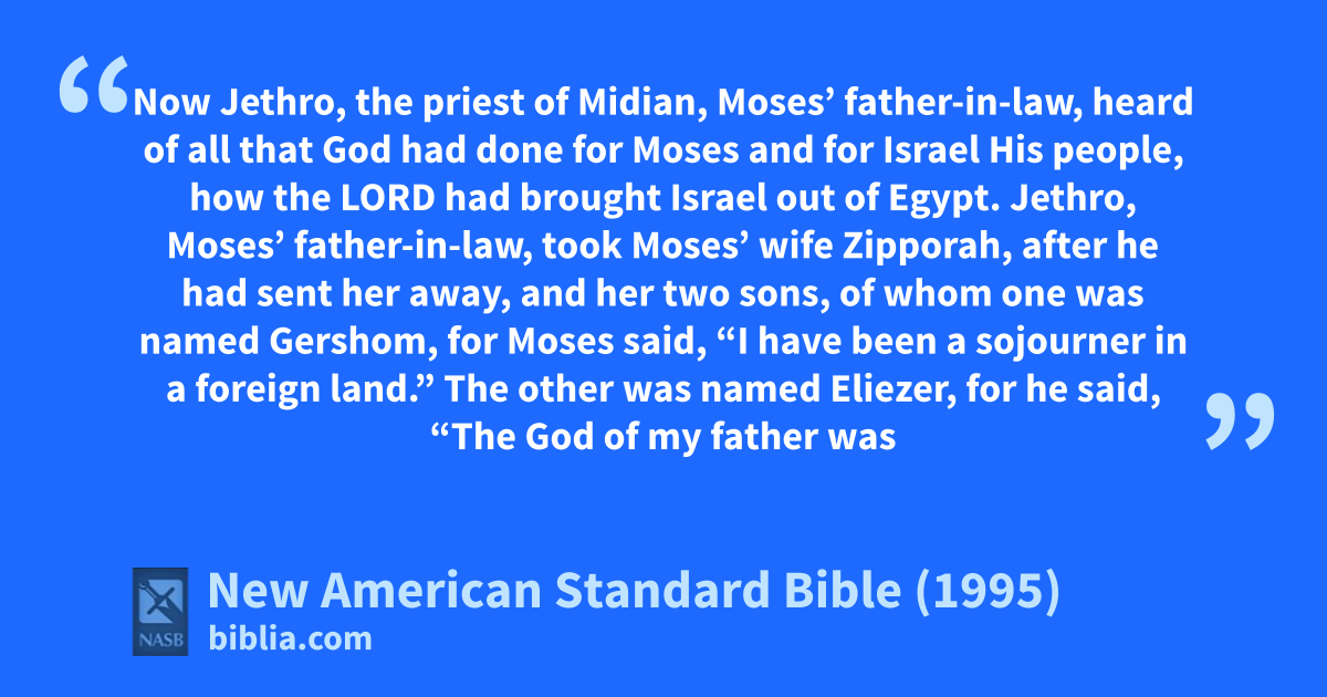 1 Now aJethro, the priest of Midian, Moses’ father-in-law, heard of all that God had done for Moses and for Israel His people, how the Lord had brought Israel out of Egypt.