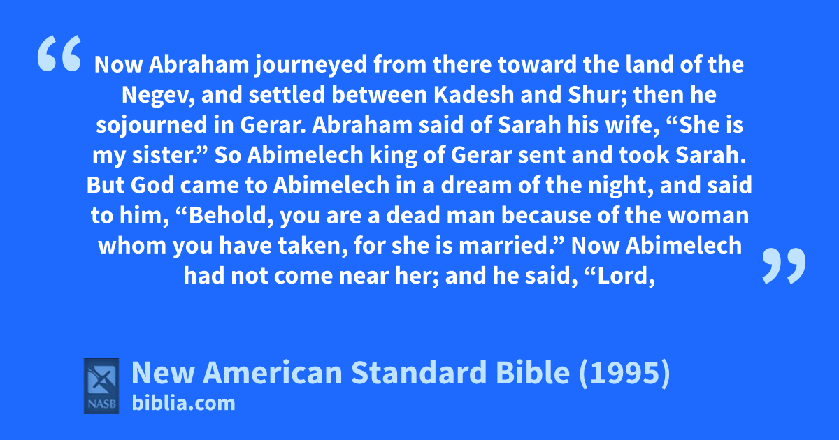 2 Abraham said of Sarah his wife, “aShe is my sister.” So bAbimelech king of Gerar sent and took Sarah.