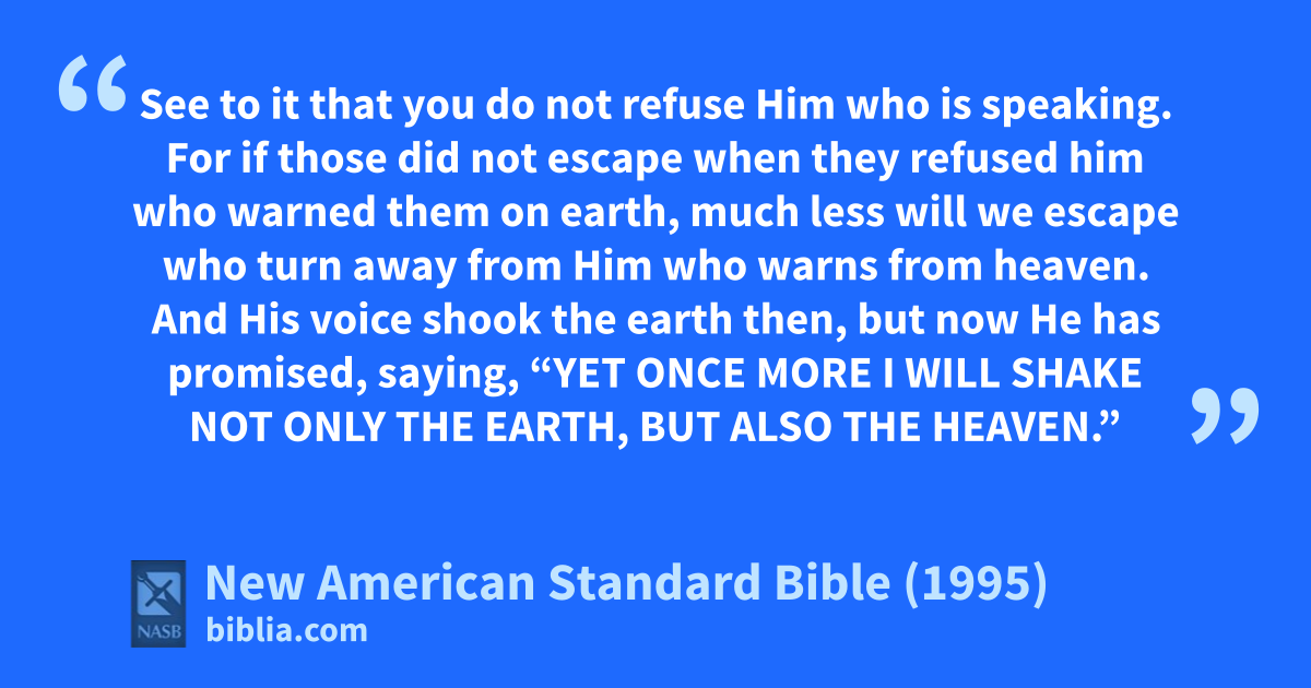 25 aSee to it that you do not refuse Him who is bspeaking. For cif those did not escape when they drefused him who ewarned them on earth, 1much less will we escape who turn away from Him who ewarns from heaven.