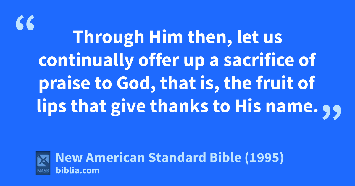 15 aThrough Him then, let us continually offer up a bsacrifice of praise to God, that is, cthe fruit of lips that 1give thanks to His name.