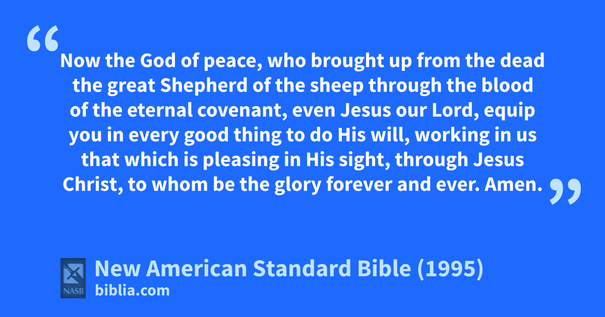 21 aequip you in every good thing to do His will, bworking in us that cwhich is pleasing in His sight, through Jesus Christ, dto whom be the glory forever and ever. Amen.