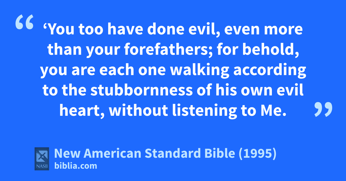 12 ‘You too have done evil, even amore than your forefathers; for behold, you are each one walking according to the bstubbornness of his own cevil heart, without listening to Me.