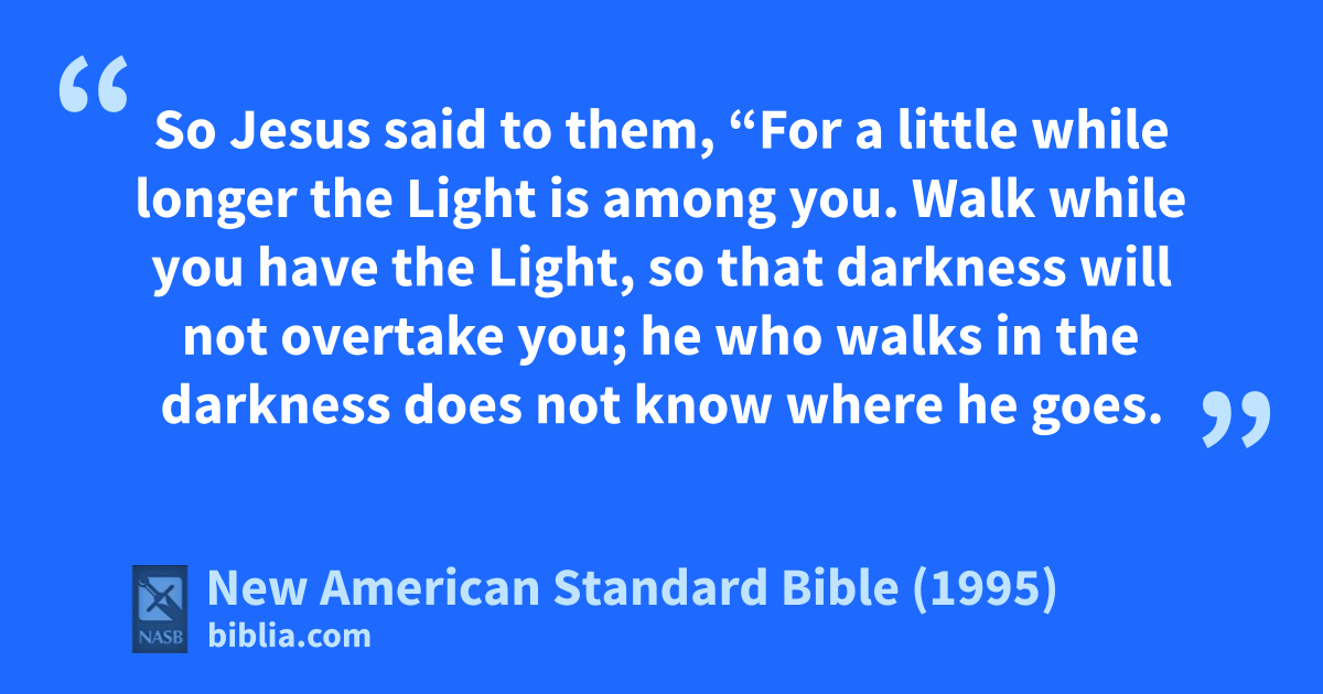 35 So Jesus said to them, “aFor a little while longer bthe Light is among you. cWalk while you have the Light, so that darkness will not overtake you; he who dwalks in the darkness does not know where he goes.
