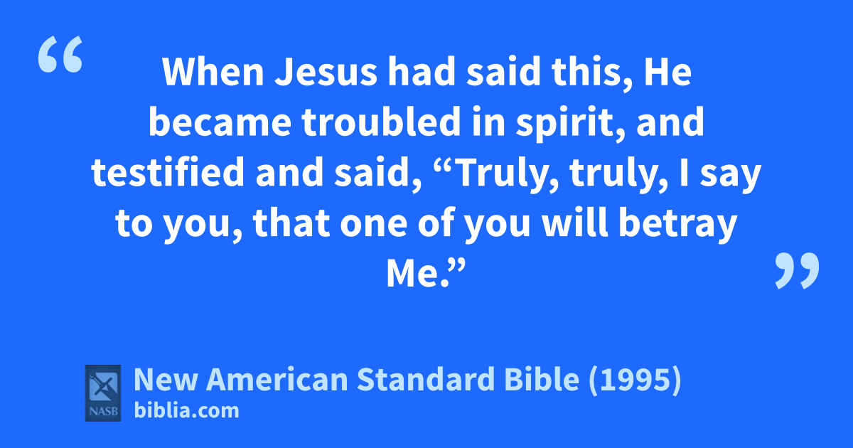 21 When Jesus had said this, He abecame troubled in spirit, and testified and said, “Truly, truly, I say to you, that bone of you will 1betray Me.”