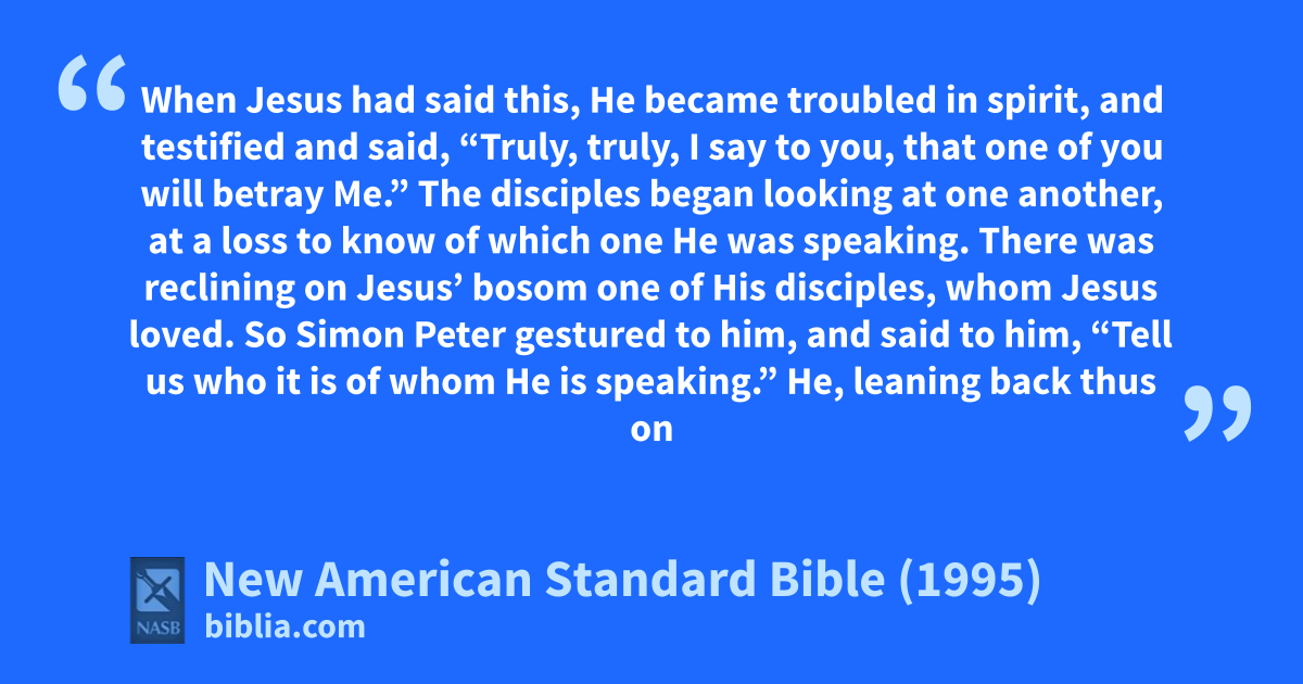 21 When Jesus had said this, He abecame troubled in spirit, and testified and said, “Truly, truly, I say to you, that bone of you will 1betray Me.”