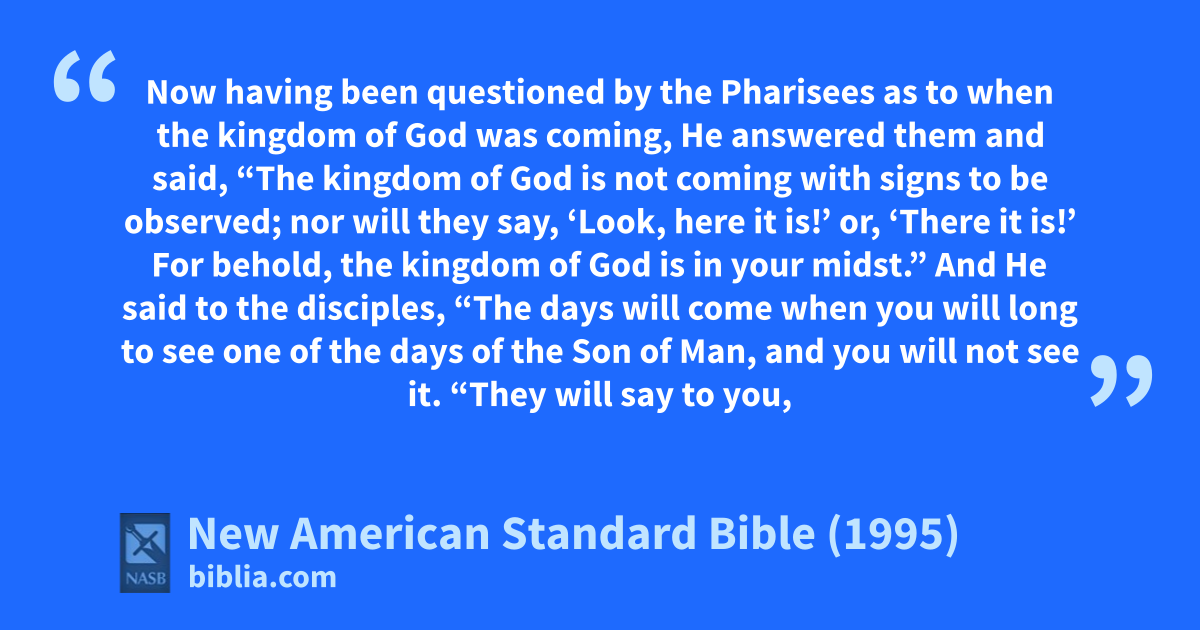 20 Now having been questioned by the Pharisees aas to when the kingdom of God was coming, He answered them and said, “The kingdom of God is not coming with 1bsigns to be observed;