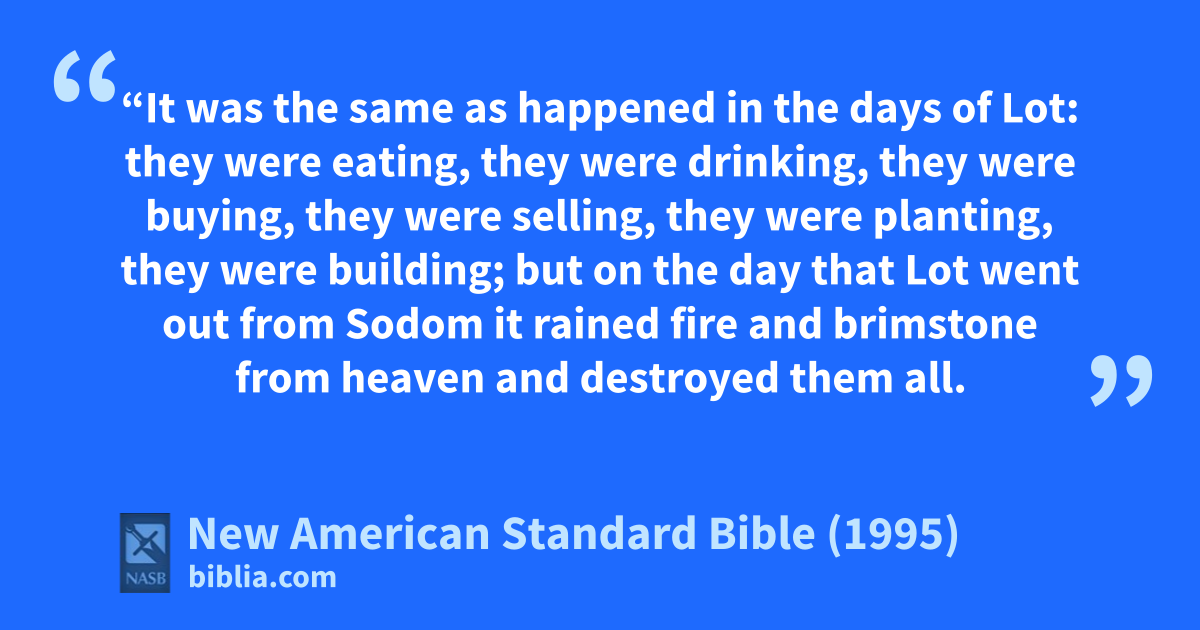 29 but on the day that Lot went out from Sodom it rained fire and 1brimstone from heaven and destroyed them all.