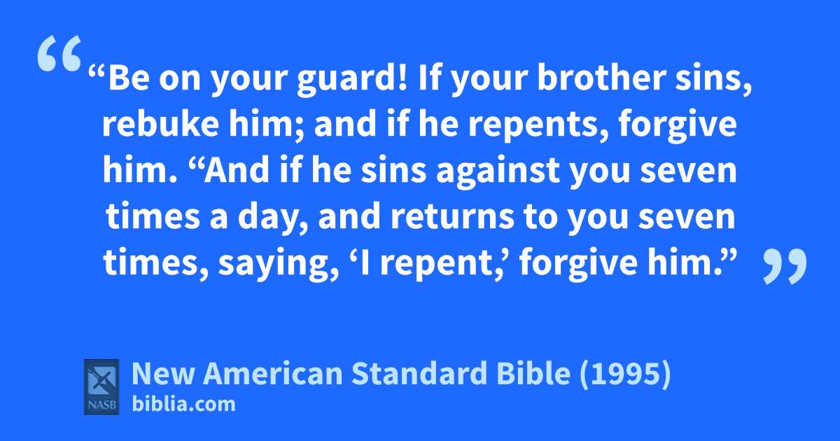 4 “And if he sins against you aseven times a day, and returns to you seven times, saying, ‘I repent,’ 1forgive him.”