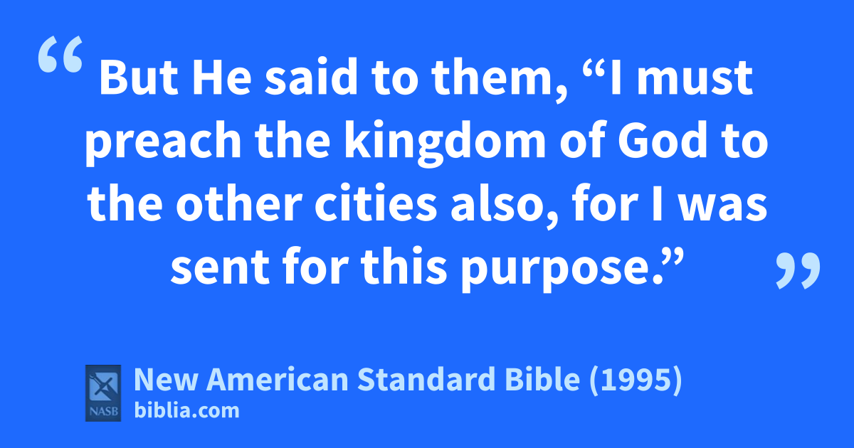 43 But He said to them, “I must preach the kingdom of God to the other cities also, afor I was sent for this purpose.”
