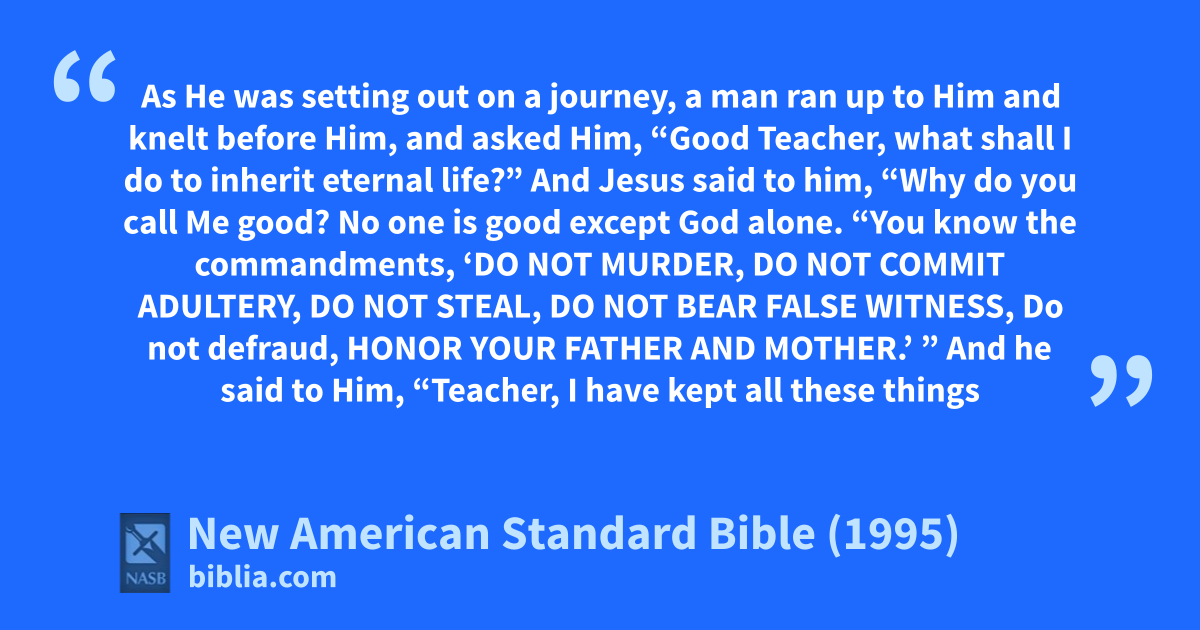 17 aAs He was setting out on a journey, a man ran up to Him and bknelt before Him, and asked Him, “Good Teacher, what shall I do to cinherit eternal life?”