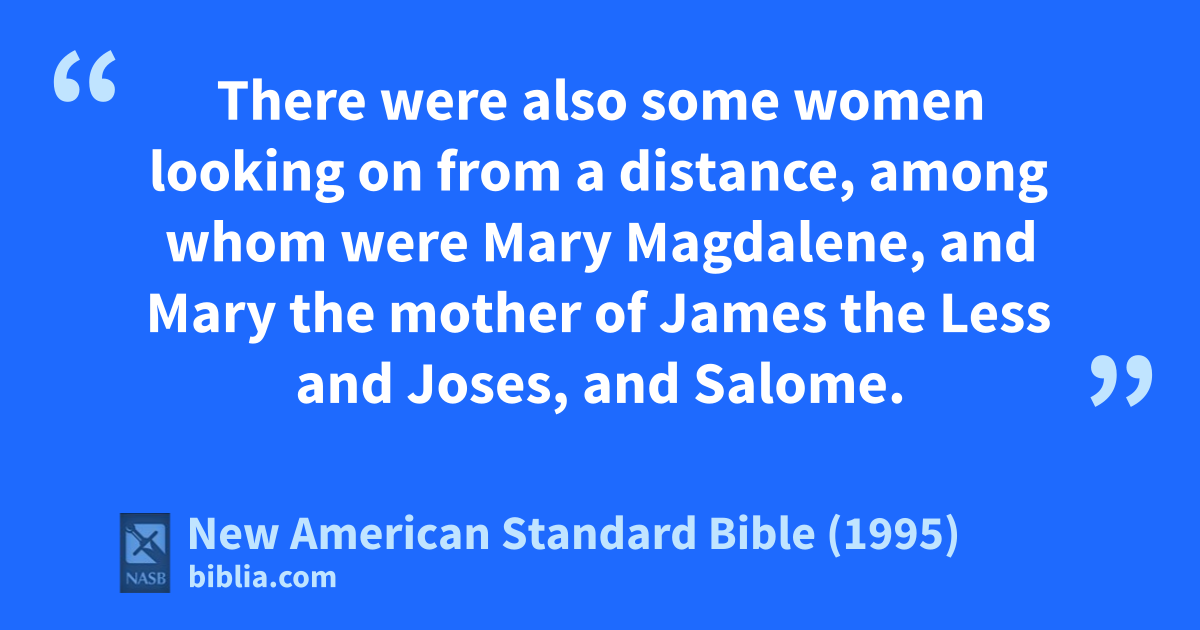 40 aThere were also some women looking on from a distance, among whom were Mary Magdalene, and Mary the mother of 1James bthe 2Less and Joses, and cSalome.