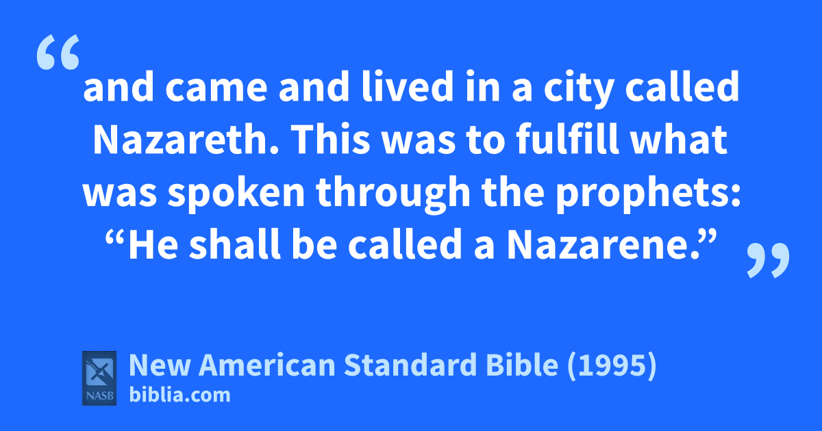 23 and came and lived in a city called aNazareth. This was to fulfill what was spoken through the prophets: “He shall be called a bNazarene.”