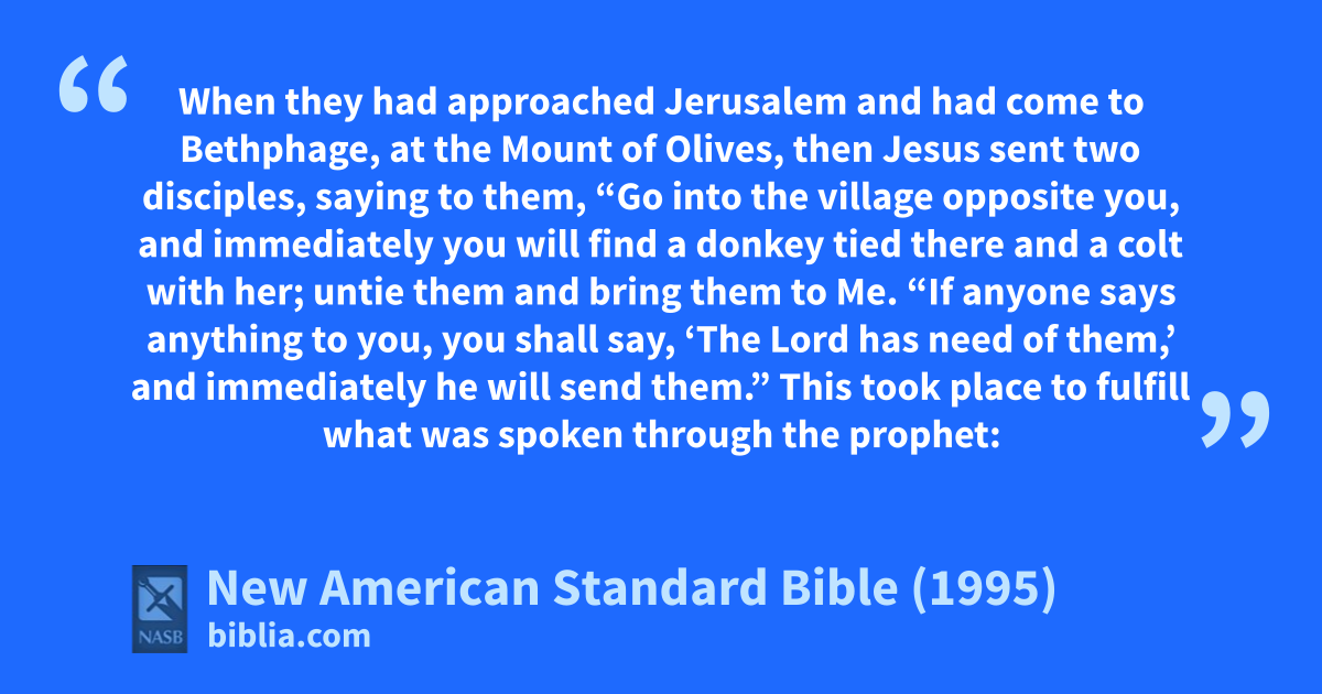 1 aWhen they had approached Jerusalem and had come to Bethphage, at bthe Mount of Olives, then Jesus sent two disciples,