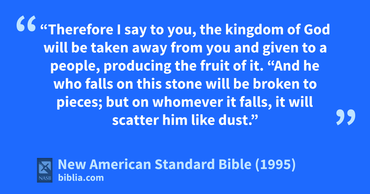 43 “Therefore I say to you, the kingdom of God will be taken away from you and given to a 1people, producing the fruit of it.