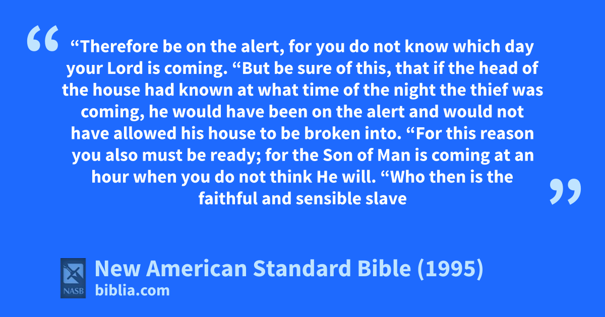 42 “Therefore abe on the alert, for you do not know which day your Lord is coming.