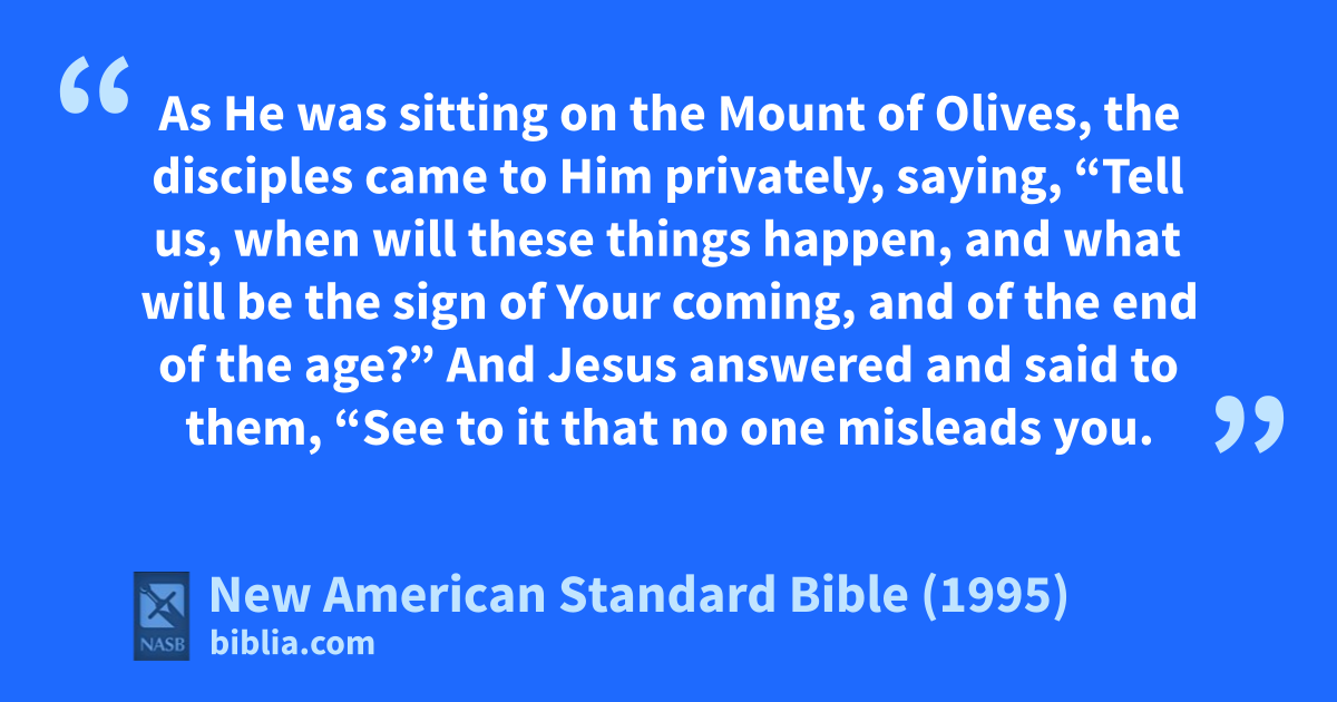 3 As He was sitting on athe Mount of Olives, the disciples came to Him privately, saying, “Tell us, when will these things happen, and what will be the sign of bYour coming, and of the 1end of the age?”