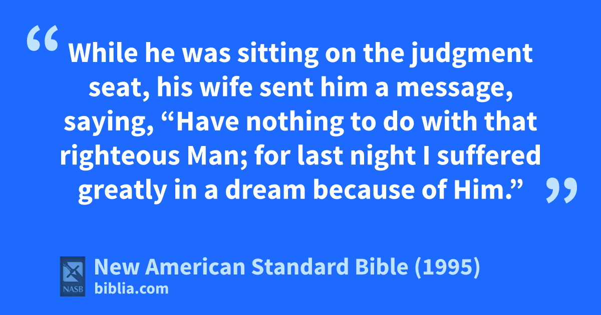 19 aWhile he was sitting on the judgment seat, his wife sent him a message, saying, “Have nothing to do with that brighteous Man; for 1last night I suffered greatly cin a dream because of Him.”