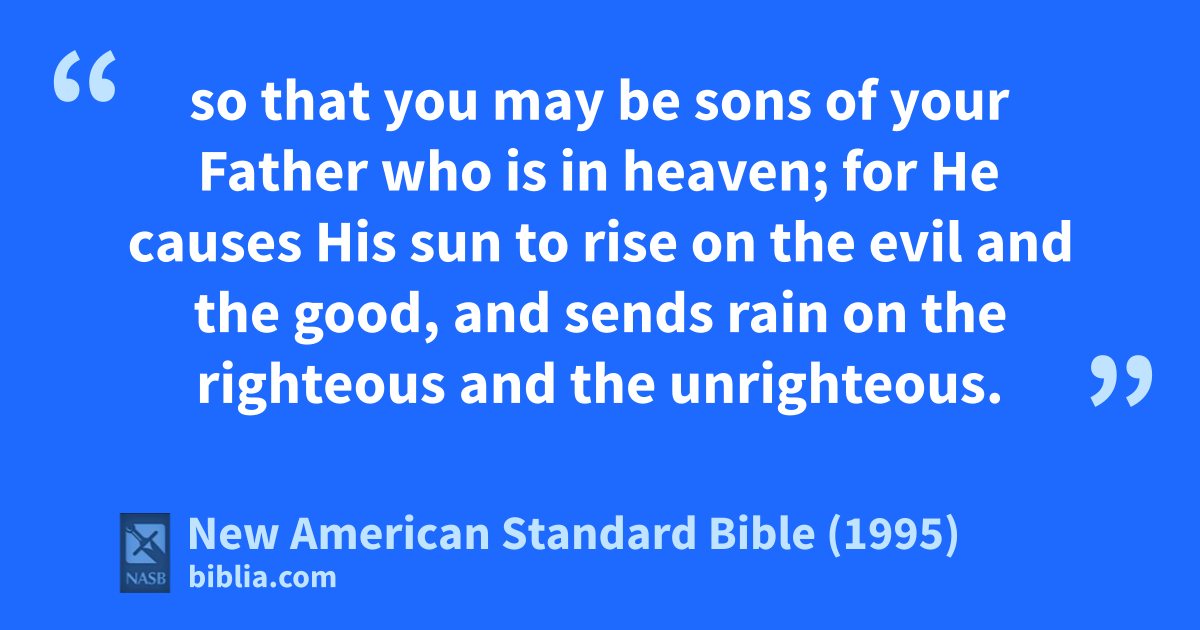 45 so that you may 1be asons of your Father who is in heaven; for He causes His sun to rise on the evil and the good, and sends rain on the righteous and the unrighteous.