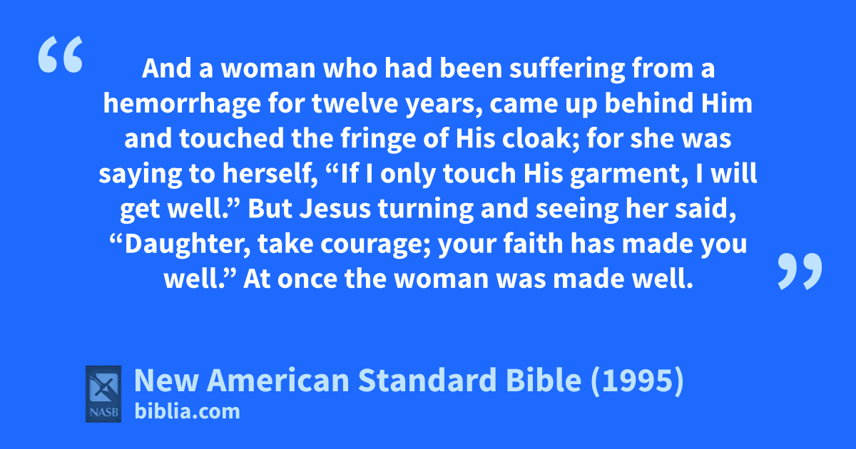 22 But Jesus turning and seeing her said, “Daughter, atake courage; byour faith has 1made you well.” 2At once the woman was 3made well.