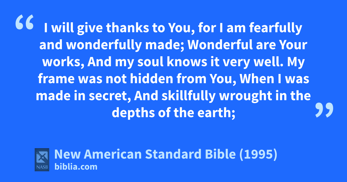 14 I will give thanks to You, for 1I am fearfully and wonderfully made;