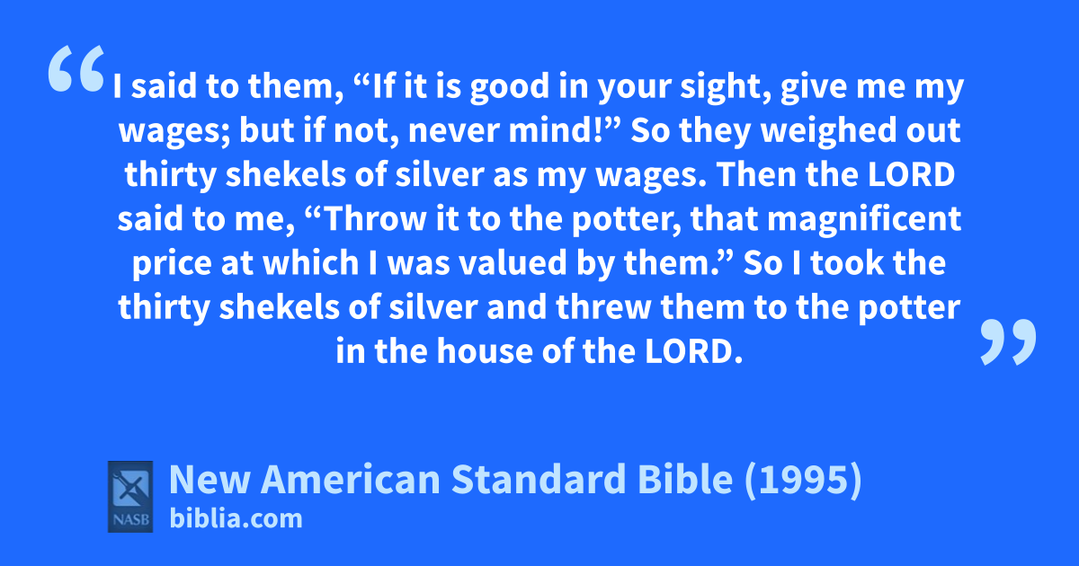 13 Then the Lord said to me, “Throw it to the apotter, that magnificent price at which I was valued by them.” So I took the thirty shekels of silver and threw them to the potter in the house of the Lord.