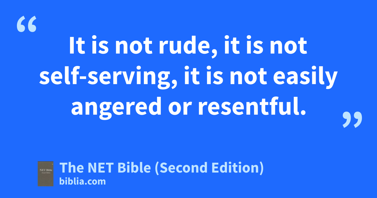 It is not rude, it is not self-serving, it is not easily angered or resentful.