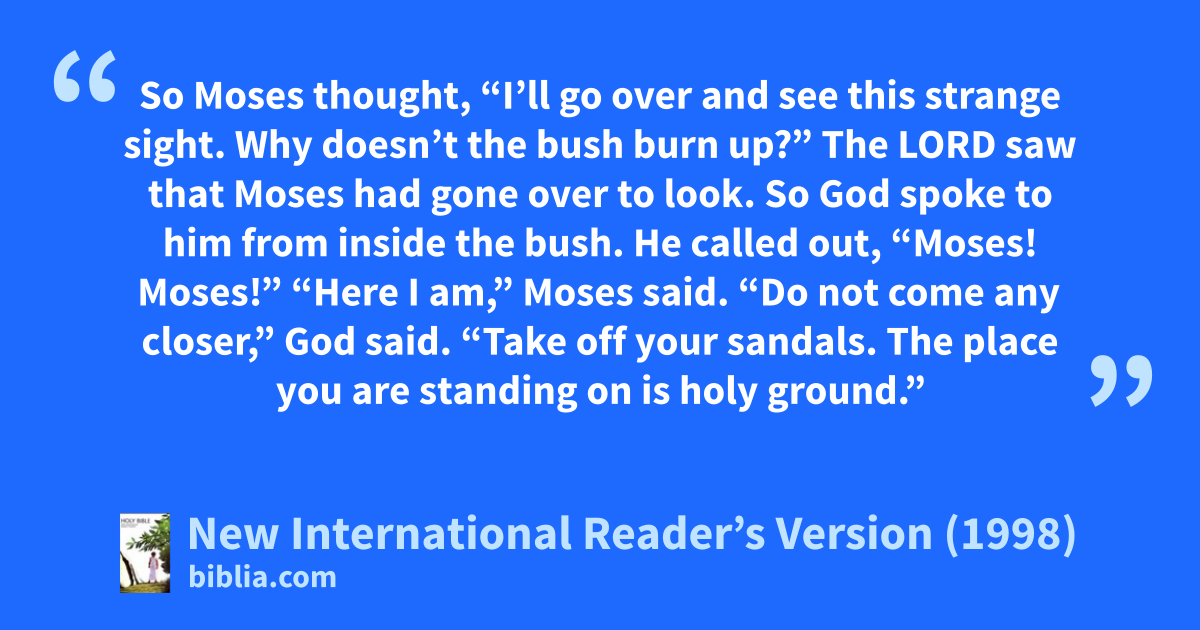 4The Lord saw that Moses had gone over to look. So God spoke to him from inside the bush. He called out, “Moses! Moses!”