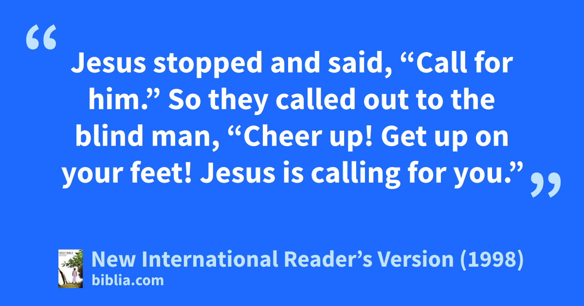 So they called out to the blind man, “Cheer up! Get up on your feet! Jesus is calling for you.”