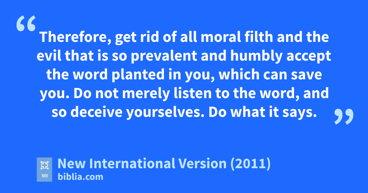 19 My dear brothers and sisters,h take note of this: Everyone should be quick to listen, slow to speaki and slow to become angry, 20 because human angerj does not produce the righteousness that God desires. 21 Therefore, get rid ofk all moral filth and the evil that is so prevalent and humbly accept the word planted in you,l which can save you.