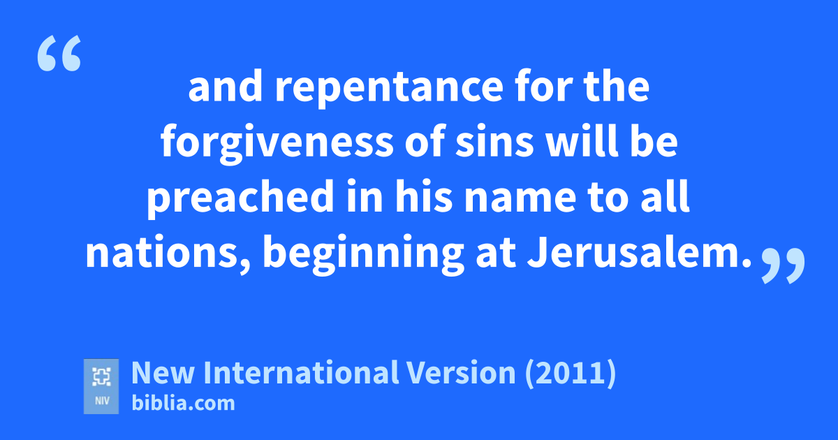 45 Then he opened their minds so they could understand the Scriptures. 46 He told them, “This is what is written: The Messiah will sufferl and rise from the dead on the third day,m 47 and repentance for the forgiveness of sins will be preached in his namen to all nations,o beginning at Jerusalem.p 48 You are witnessesq of these things. 49 I am going to send you what my Father has promised;r but stay in the city until you have been clothed with power from on high.”
