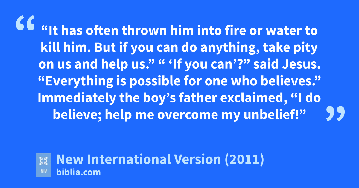 24 Immediately the boy’s father exclaimed, “I do believe; help me overcome my unbelief!”