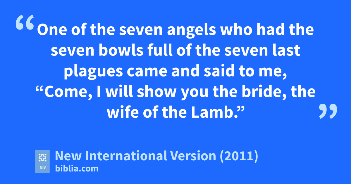 9 One of the seven angels who had the seven bowls full of the seven last plaguesj came and said to me, “Come, I will show you the bride,k the wife of the Lamb.” 10 And he carried me awayl in the Spiritm to a mountain great and high, and showed me the Holy City, Jerusalem, coming down out of heaven from God.n 11 It shone with the glory of God,o and its brilliance was like that of a very precious jewel, like a jasper,p clear as crystal.q 12 It had a great, high wall with twelve gates,r and with twelve angels at the gates. On the gates were written the names of the twelve tribes of Israel.s 13 There were three gates on the east, three on the north, three on the south and three on the west. 14 The wall of the city had twelve foundations,t and on them were the names of the twelve apostlesu of the Lamb.