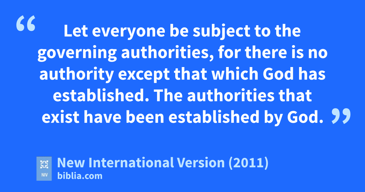 13 Let everyone be subject to the governing authorities,p for there is no authority except that which God has established.q The authorities that exist have been established by God. 2 Consequently, whoever rebels against the authority is rebelling against what God has instituted,r and those who do so will bring judgment on themselves. 3 For rulers hold no terror for those who do right, but for those who do wrong. Do you want to be free from fear of the one in authority? Then do what is right and you will be commended.s 4 For the one in authority is God’s servant for your good. But if you do wrong, be afraid, for rulers do not bear the sword for no reason. They are God’s servants, agents of wrath to bring punishment on the wrongdoer.t 5 Therefore, it is necessary to submit to the authorities, not only because of possible punishment but also as a matter of conscience.u