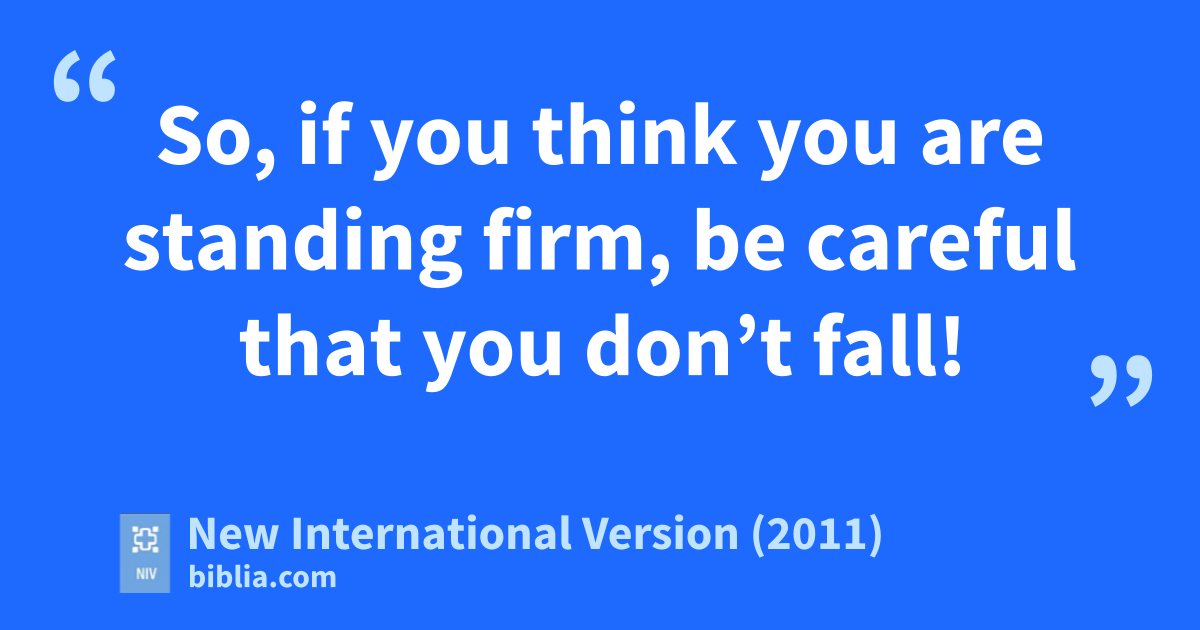 11 These things happened to them as examplesi and were written down as warnings for us,j on whom the culmination of the ages has come.k 12 So, if you think you are standing firm,l be careful that you don’t fall! 13 No temptationc has overtaken you except what is common to mankind. And God is faithful;m he will not let you be temptedd beyond what you can bear.n But when you are tempted,e he will also provide a way out so that you can endure it.