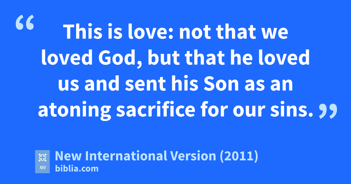 7 Dear friends, let us love one another,h for love comes from God. Everyone who loves has been born of Godi and knows God.j 8 Whoever does not love does not know God, because God is love.k 9 This is how God showed his love among us: He sent his one and only Sonl into the world that we might live through him.m 10 This is love: not that we loved God, but that he loved usn and sent his Son as an atoning sacrifice for our sins.o 11 Dear friends,p since God so loved us,q we also ought to love one another.r 12 No one has ever seen God;s but if we love one another, God lives in us and his love is made complete in us.t
